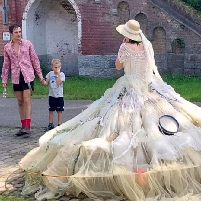 Evi verzamelt verhalen. Elke rode draad of los eindje krijgt een plek in haar jurk. Zij kan je haarfijn vertellen welke draad gesponnen is door Ariadne of wat de lotgevallen waren van mensen wiens draad te vroeg is doorgeknipt. Haar jurk is geweven door de spin Anansi (wiens draad nog sterker is dan een visnet) en gekleurd door de wolkenspinsters.