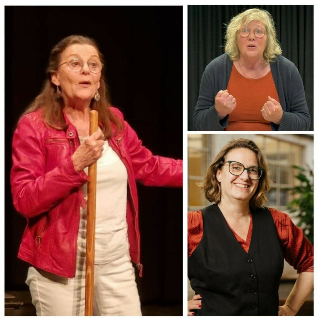 Marjo Eliëns (links) vertelt het liefst verhalen die humor of spanning in zich hebben. Ze kruipt in de huid van personages en gebruikt vaak geluid/instrumenten. Ze heeft verhalen voor alle leeftijden.
